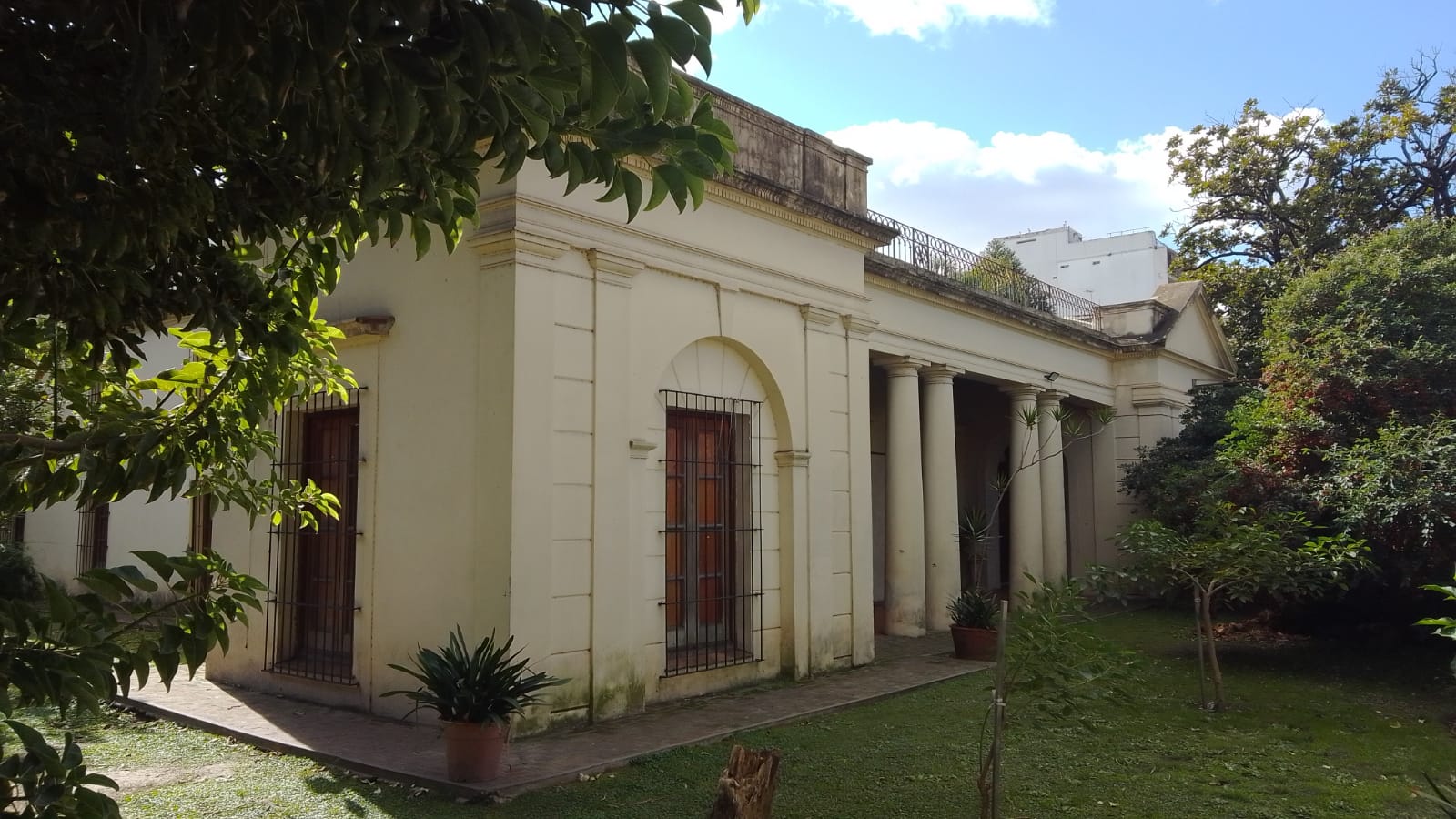 Existe un lugar muy hermoso y escondido en el barrio de Flores. Una casona tan emblemática y muchas veces obviada por los vecinos que pasamos con el tren a diario. El Marcó del Pont es una quinta histórica por estas tierras. Hace unos días me dispuse a bajar en Flores (venia de Caballito a Villa Luro) y después de años de pasar con el tren me acerqué y la conocí. Es increíble la dualidad de estilos tan opuestos cuando uno pasa la reja pegada a la estación. Entrar es ya como sumergirse hace 160 años atrás, si bien se escuchan las bocinas y el frenetismo de la estación, ya pisar esas baldosas antiguas me sumergieron en una Buenos Aires más parecida a un paraje que a una ciudad, en mi mente trataba de imaginarme el silencio y la amplitud. Caminé hasta la casa donde uno ve un frondoso patio con decoraciones de la época y llega a una hermosa galería con muchas puertas de época. Al tocar una de las puertas me atendió un señor muy amable quien me contó un poco la historia del lugar. Una construcción de 1860 motivada por la llegada del ferrocarril que se iba extendiendo hacia el interior. En ese momento Flores era un pueblito aislado con quintas. Supo ser una residencia familiar, pero también escenario de la Revolución de 1890 donde frecuentaron sus salas, entre otros, Bartolomé Mitre, y también como hospital de sangre. Al fondo hay unos arboles añejos y un patio amplio, al alejarme sentí realmente que estaba en el siglo XIX porque no veía edificios atrás. Es un lugar para conocer y asombrarse, por lo hermoso y porque su construcción se encuentra casi intacta. Algo que me pregunté, sin tener respuesta, es el por qué se construyó tan pegada a la estación del tren, habiendo tanto espacio, pero hay versiones de que ya había sido construida antes de la llegada del ferrocarril. Hoy es un hermoso y valioso centro cultural, la dirección es Artigas 202, pegadito a la vía.